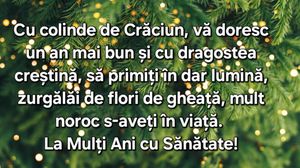 Cu colinde de Crăciun, vă doresc un an mai bun și cu dragostea creștină, să primiți în dar lumină, zurgălăi de flori de gheață, mult noroc s-aveți în viață. La mulți ani!