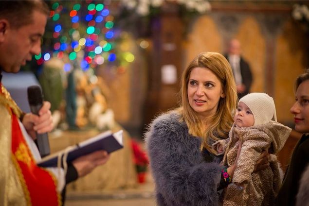 „Am ales, impreuna cu preotul paroh, sa-mi crestinez fetita in a doua zi de Craciun, imediat dupa slujba de Liturghie. Catedrala Sfantul Iosif era impodobita cu brazi maiestuosi si cu scena Nasterii lui Iisus, iar slujba, la care au participat doar familia si cei mai apropiati prieteni, a fost extrem de emotionanta.