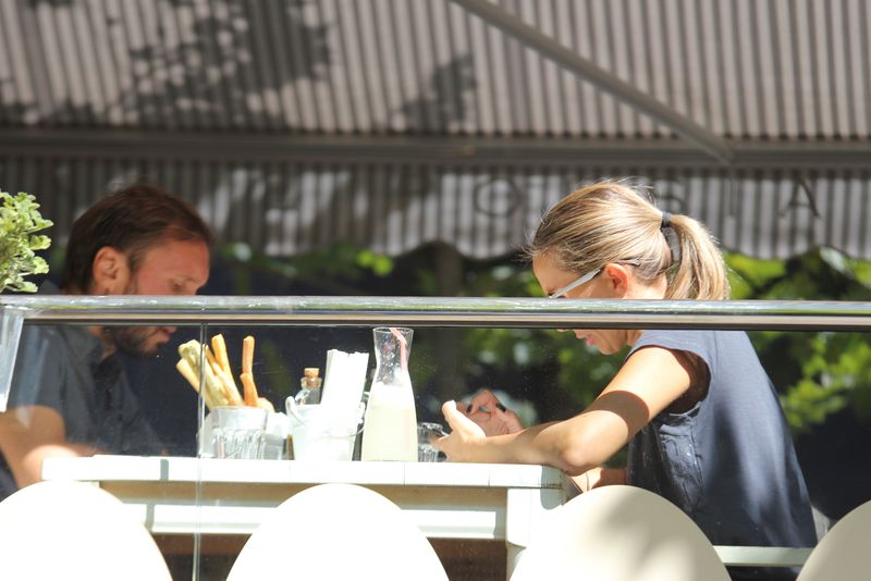 Cei doi au iesit la un restaurant din Capitala, dar pareau mai blazati ca niciodata. Au butonat in nestire telefonul, iar la un moment dat, pe Crina a apucat-o grav cascatul