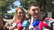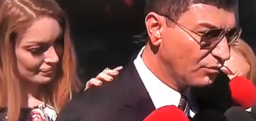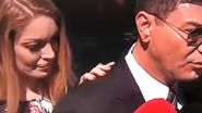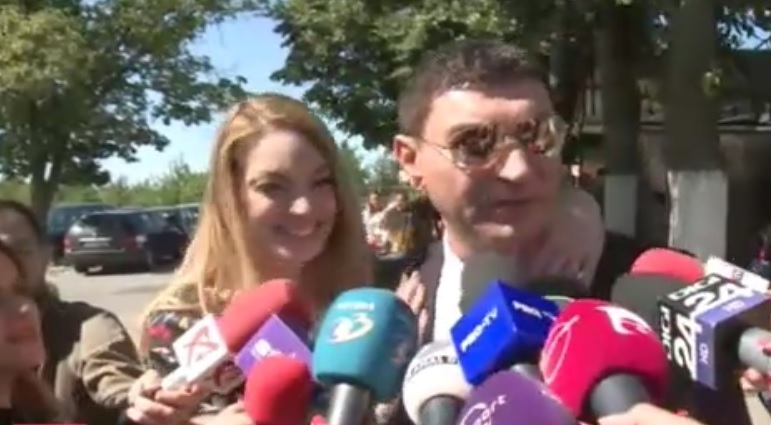 Valentina Pelinel l-a intampinat inca de la iesire si s-a lipit puternic de el, in valtoarea de jurnalisti.