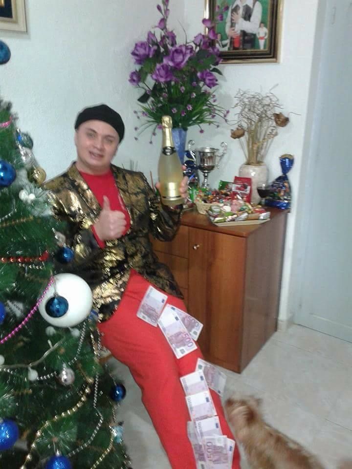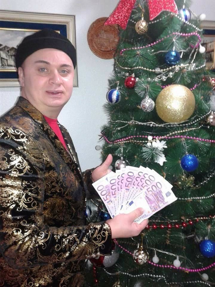 Cristi din Banat s-a pozat cu mii de euro sub brad! S-a acoperit cu bancnote sa-i faca in ciuda lui Mos Craciun!