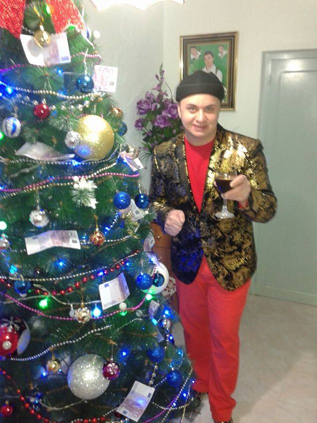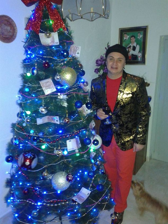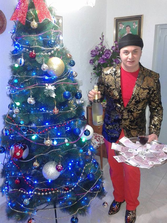 Cristi din Banat, cantaretul devenit celebru pentru videoclipul piesei "Ca o apa cristalina”, se pregateste de Sarbatori in locuinta sa din Spania. El a cumparat un brad pe care l-a impodobit cu zece bancnote de 500 de euro, aducandu-le pe o tava in mijlocul careia se afla si un pahar cu vin.