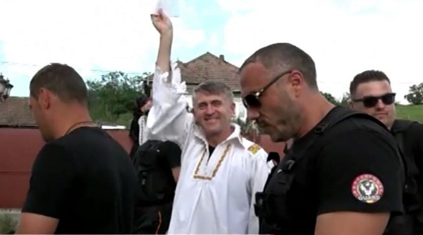 Preotul Pomohaci a cantat la un concert in comuna Sanpetru de Campie. Parintele era imbracat intr-un costum popular si a fost insotit de jandarmi pana la scena.