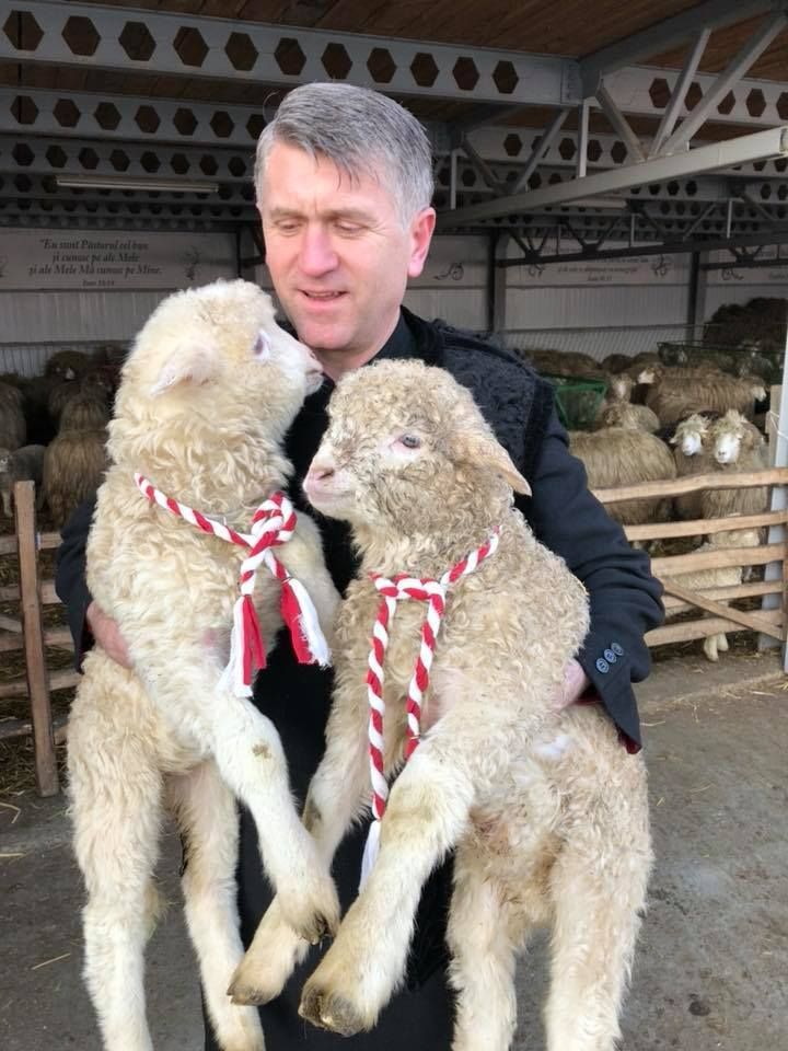 De 1 Martie, el a postat o fotografie inedita, cu doi miei la gatul carora a atasat doua ate de martisor.