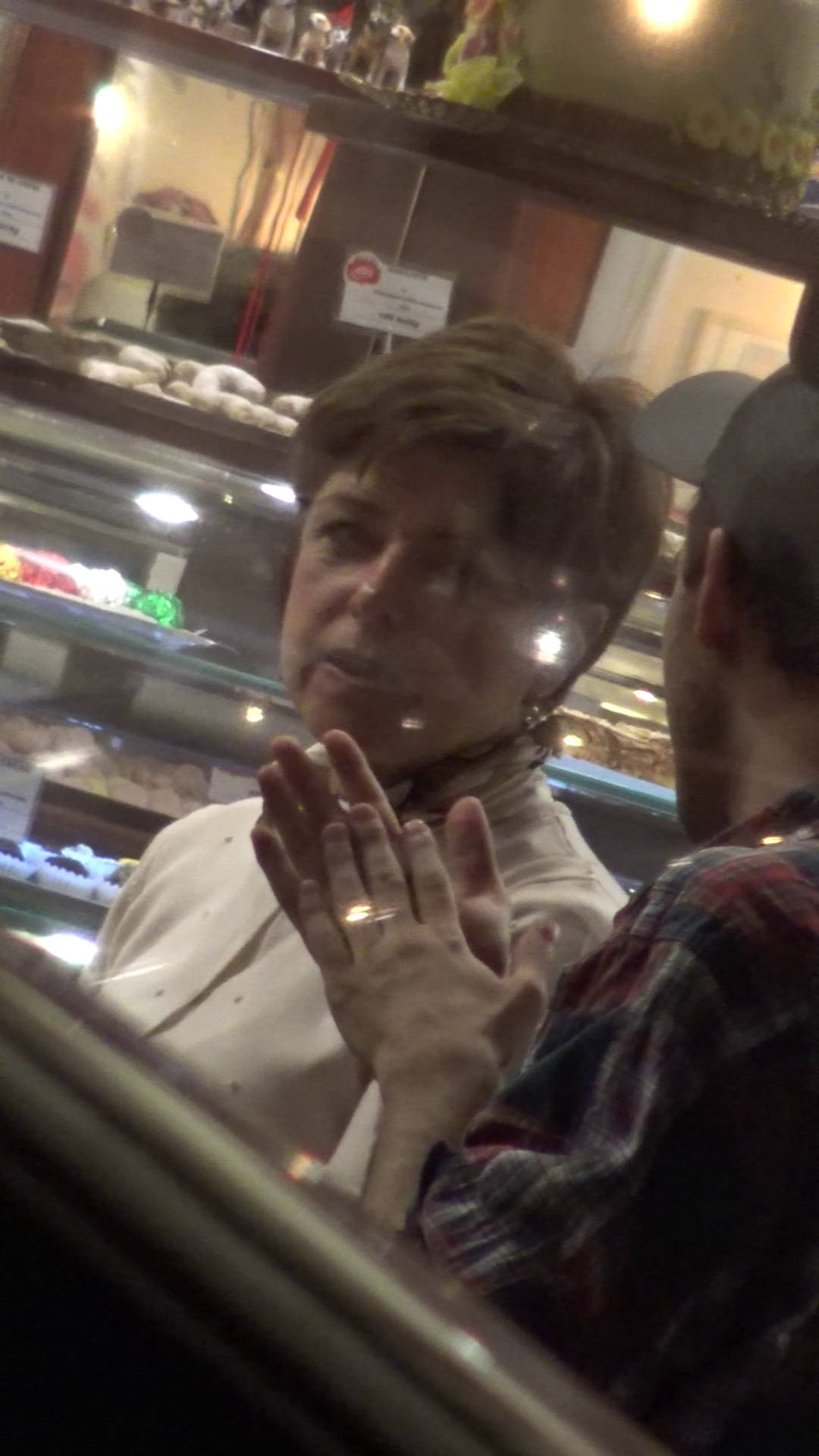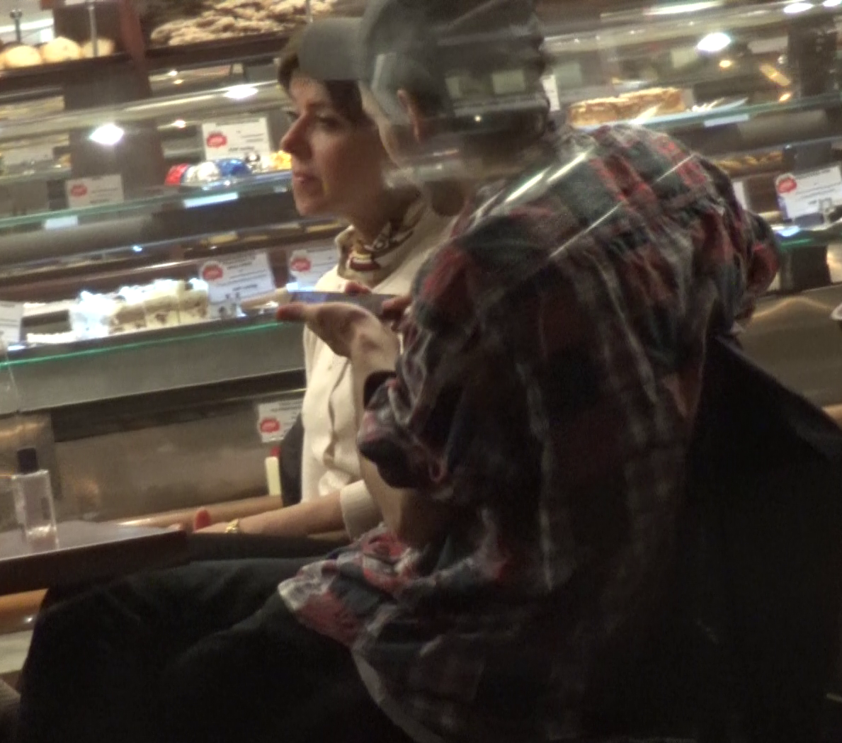 Sotia lui George Copos este toata ziua in cofetaria sa - acolo are masa ei, la geam, unde se intalneste atat cu partenerii de afaceri, cat si cu diverse cunostinte. Si, probabil ca inconjurati de prajituri, toate discutiile se poarta cu zambetul pe buze.