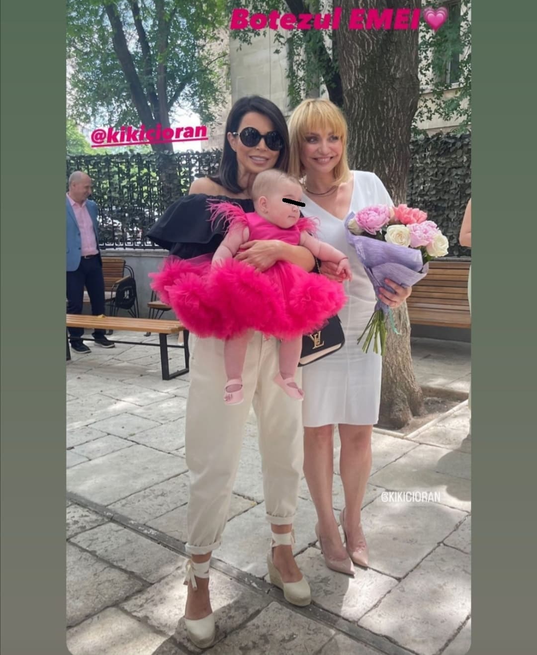 Știrista, îndrăgostită de Ema, nu s-a putut abține și a făcut o fotografie cu fata Cristinei Cioran, ținând-o în brațe, zâmbitoare și relaxantă, la fel cum a fost și ținuta sa. Vedeta a optat pentru un top negru și pantaloni albi, la fel ca și încălțămintea, un machiaj simplu, per total, având o imagine de zile mari.
