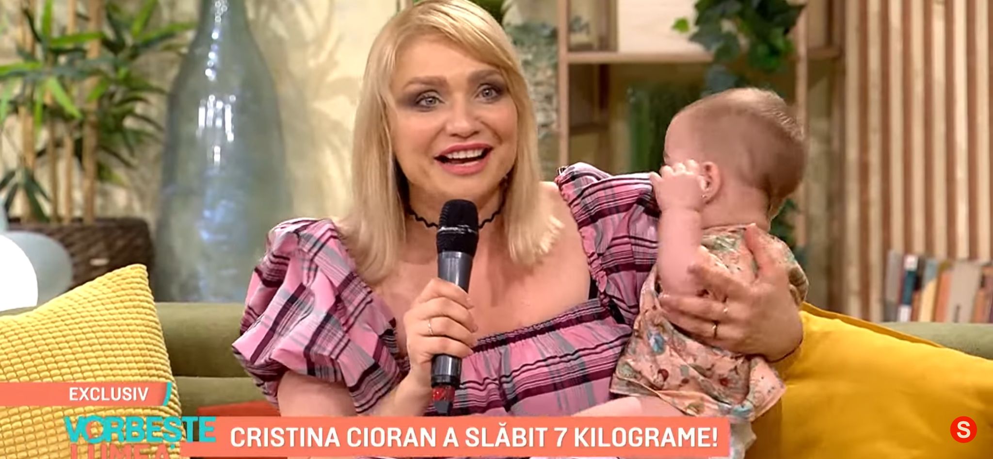 Cristina Cioran a venit însoțită cu fiica ei la o emisiunea televizată. Este pentru prima dată când vedeta o ia pe micuța Ema cu ea, iar micile surprize s-au ținut lanț. Ei bine, se pare că cea mică a venit în platoul emisiuni cu o poftă de vorbă și abia dacă a lăsat-o pe mama ei să povestească cum a reușit să topească kilogramele în plus după ce a născut-o. Emily Burghelea a încercat să o calmeze pe fetiță, însă aceasta nici chip să se potolească până când nu a ajuns în brațele mamei ei.