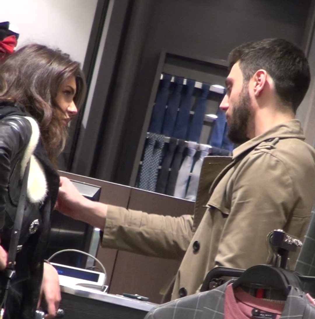 Cel mai probabil Luca facuse vreo pozna, iar ca sa-l pedepseasca, frumusica de la BRomania l-a "tarat" dupa ea prin toate magazinele de haine din mall-ul respectiv. Ardelean la origini, tanarul s-a dovedit rabdator pana la un punct, cand a cedat psihic.