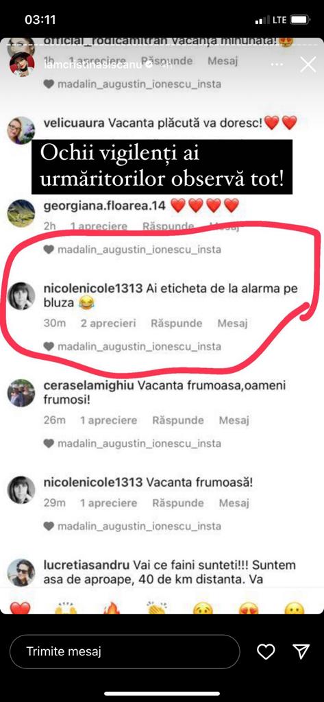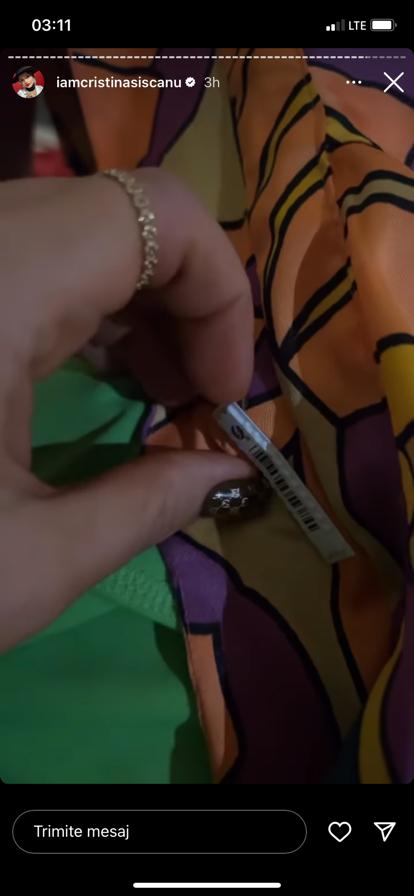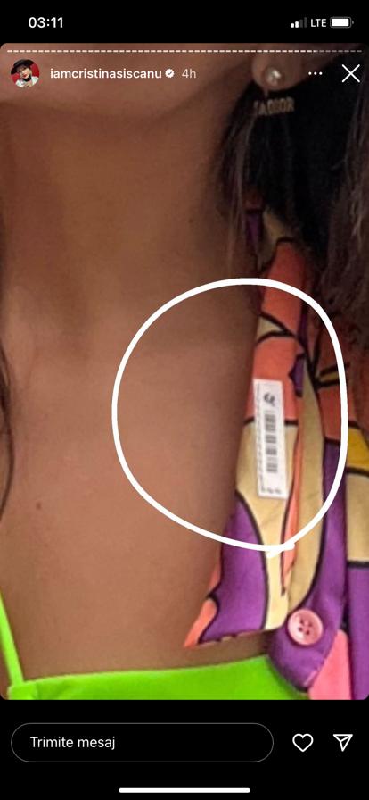 „Ochii vigilenți ai urmăritorilor observă tot! Bine că mi-a spus doamna aceea că a văzut în poză, eu nu am observat. Chiar dacă am spălat această bluză, această alarmă nu s-a dezlipit, ce-i drept am spălat-o la 20 de grade, hai să scăpăm de ea, se întâmplă și la case mai mari”, a spus Cristina Șișcanu pe InstaStory.