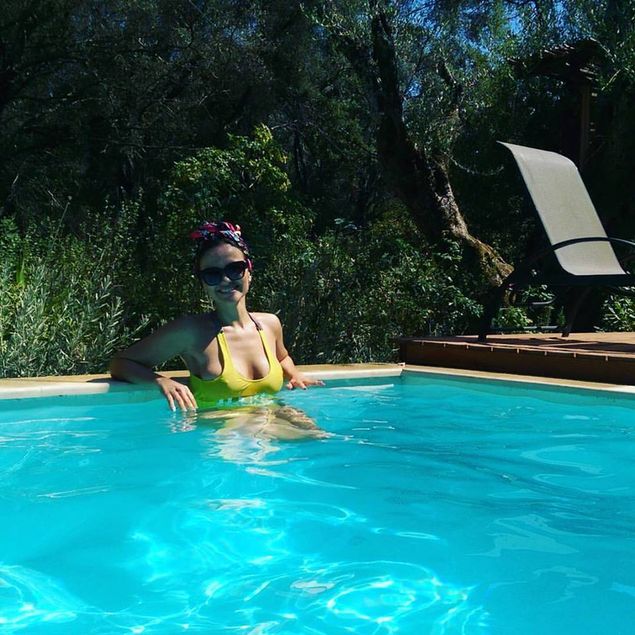 Cristina Siscanu a facut furori pe contul de socializare cu pozele de la piscina. Sotia lui Madalin Ionescu a purtat un costum de baie din doua piese, cu imprimeu.