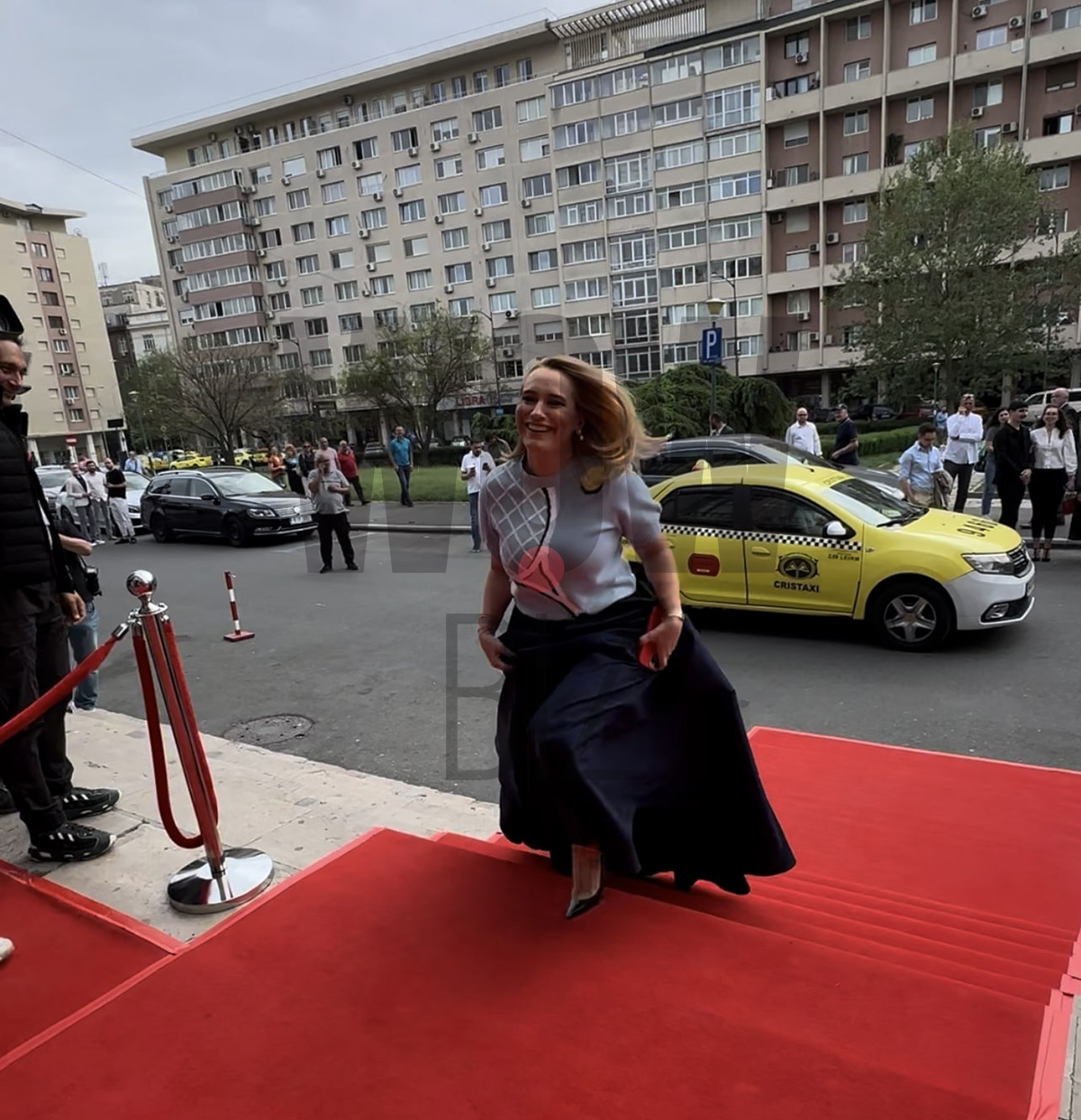 Iubita lui Ion Țiriac a ales o rochie tip furou, o rochie ce o avantajează, pentru că are o siluetă foarte bine conturată. Este o ținută bine aleasă, însă mi-aș fi dorit să facă ceva în privința coafurii. La o astfel de rochie te puteai juca, ai o varietate atât de mare a coafurilor, încât felul în care ea a venit cu părul ușor neglijent, nu e tocmai bine.