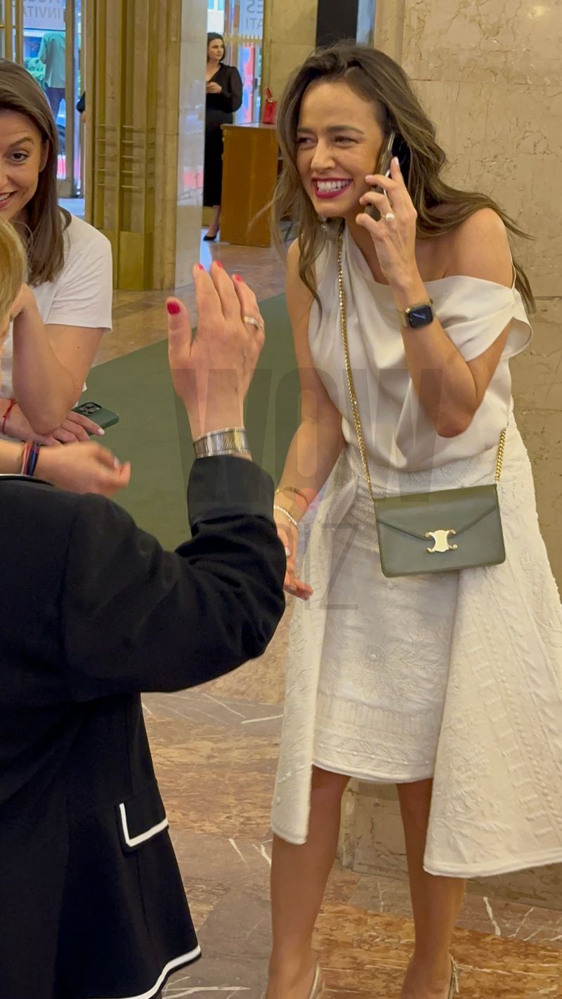 Andreea Raicu, așa cum ne-a obișnuit cu o ținută safe, deși mi-ar fi plăcut să o văd într-o rochie lungă. Are un corp frumos și o avantajează. Tipul acesta de a purta geanta nu e deloc adecvat pentru o premieră, mai ales pentru un covor roșu. În schimb, îi vine foarte bine ținuta, îi armonizează corpul frumos, bravo ei.