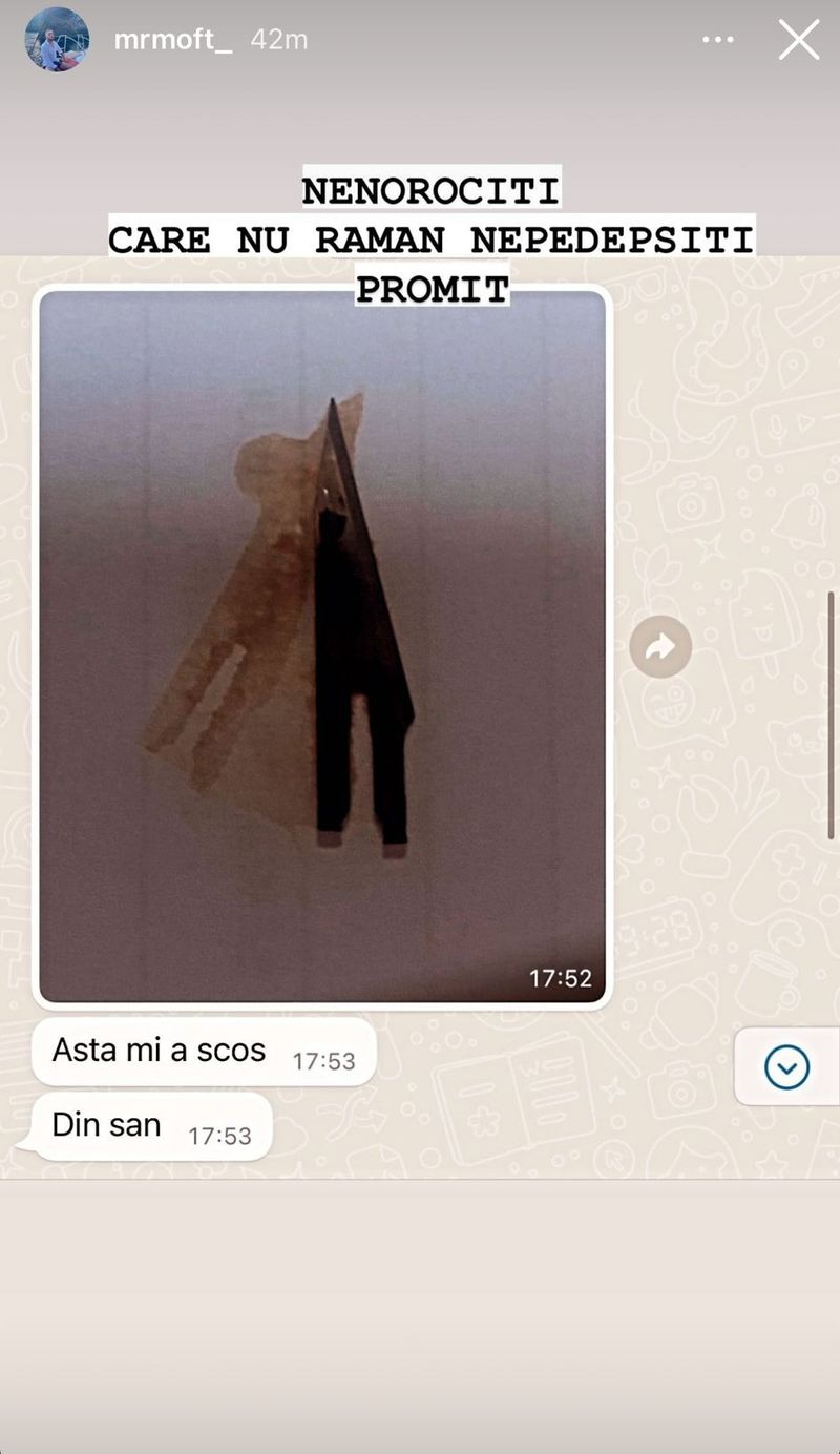 „Dumnezeu este mare și este peste tot, la fiecare colț din Bucureștiul ăsta și nu doar atât... Crede-mă că Dumnezeu e prezent în toate sectoarele 1, 2, 3, 4, 5, 6. Mesajul ăsta este pentru nenorocitul cu fapta asta. Roagă-te să ajungi la pușcărie, să fii închis, că din moment ce ai făcut așa ceva, te anunț că nu mai ai loc pe acest pământ”, a scris Fulgy în continuare pe rețelele de socializare.