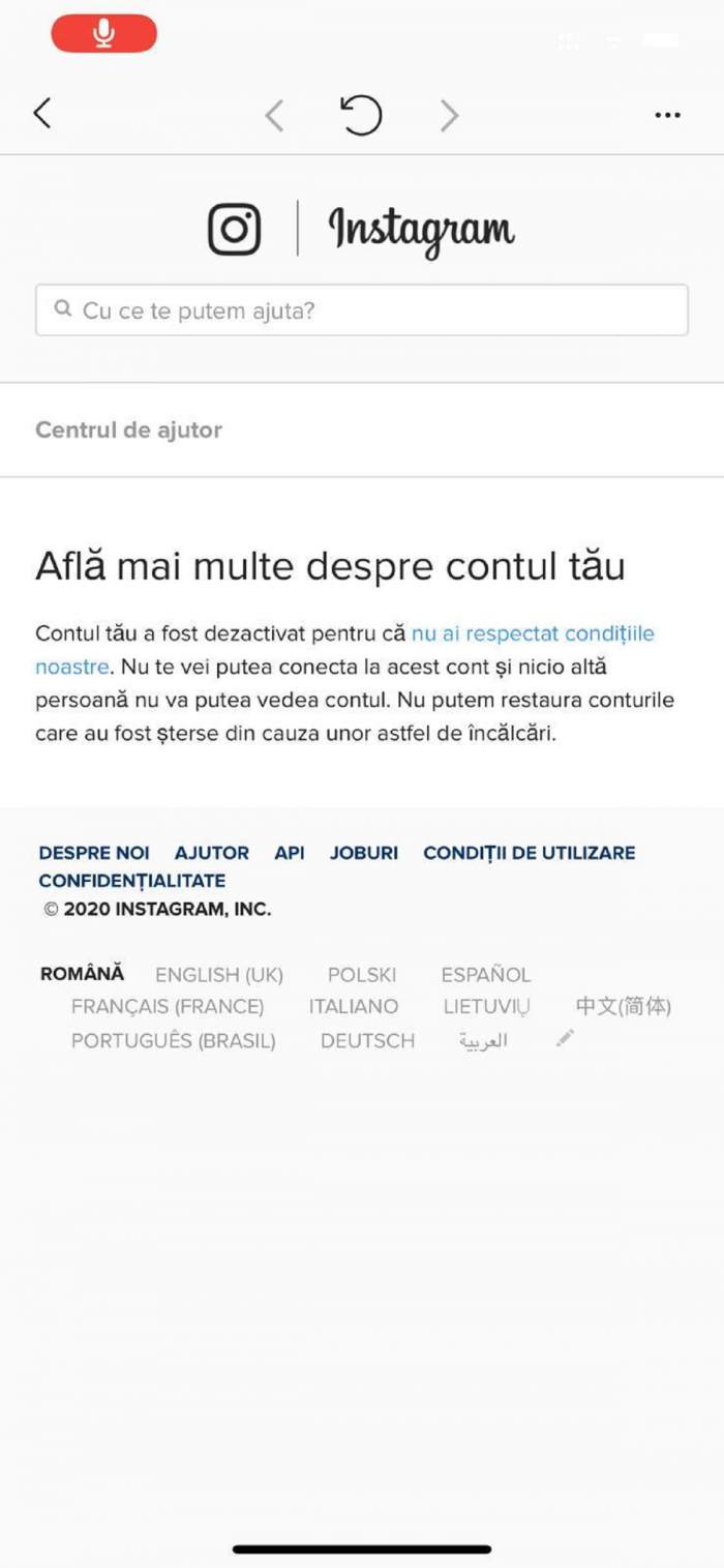 „Nu înțeleg de ce mi-a fost închis contul sau raportat, pentru că nu pun poze obscene, nu pun poze care să încalce regulile Instagram-ului.
