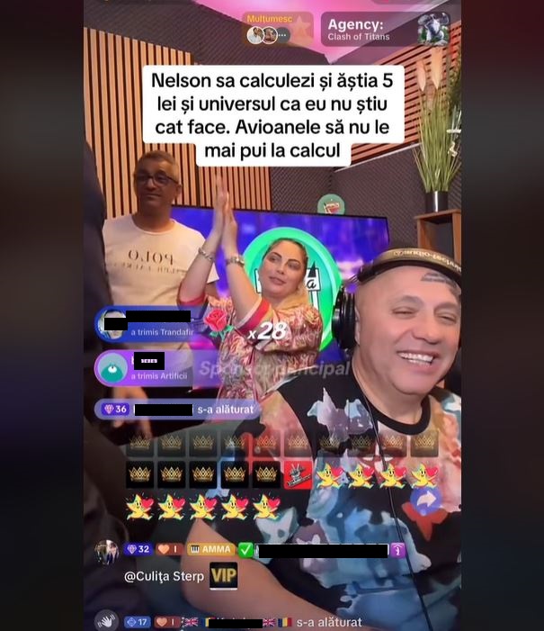 „Nelson, să calculezi și ăștia 5 lei și universul că eu nu știu cât face. Avioanele să nu le mai pui la calcul.”, a scris Culiță Sterp, în dreptul unei secvențe din live-ul lui Nicolae Guță, acolo unde artistul este surprins făcându-i dedicații colegului de breaslă.