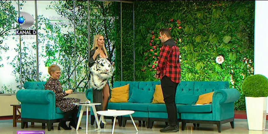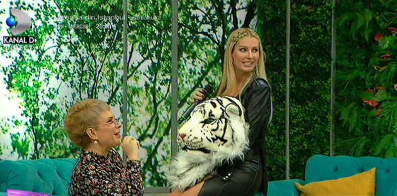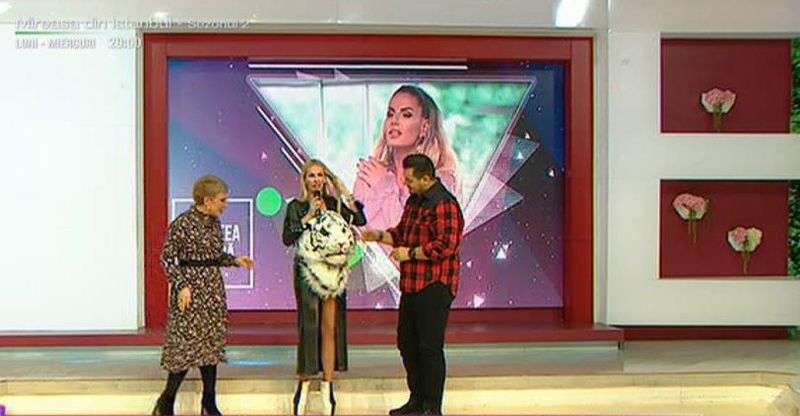 Andreea Bănică a ales să vină cu un rucsac în formă de cap de tigru. Teo şi Bursucu s-au mirat tare când au văzut-o aşa. „Este un rucsac pe care îl poţi purta cum vrei”, a explicat Andreea Bănică. Teo s-a asigurat că nu vor exista ştiri neadevărate. „Să nu credeţi că vrea să mascheze ceva cu tigrul ăsta”, a precizat gazda Teo Show.