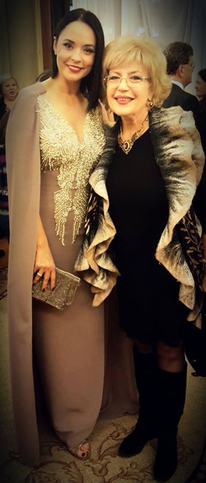 "Aseara, vocea sopranei Angela Gheorghiu a ajuns la ingeri... imaginea surprinde momentul emotionant in care mama Ionei Geambasu, tanara de 18 ani ce este astazi inger dupa drama Colectiv, i-a daruit Angelei Gheorghiu una din lucrarile de arta ale fiicei sale...