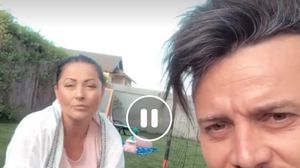 Cum a apărut Gabriela Cristea în live-ul soțului! Aoleu, s-a văzut mai mult decât trebuia!