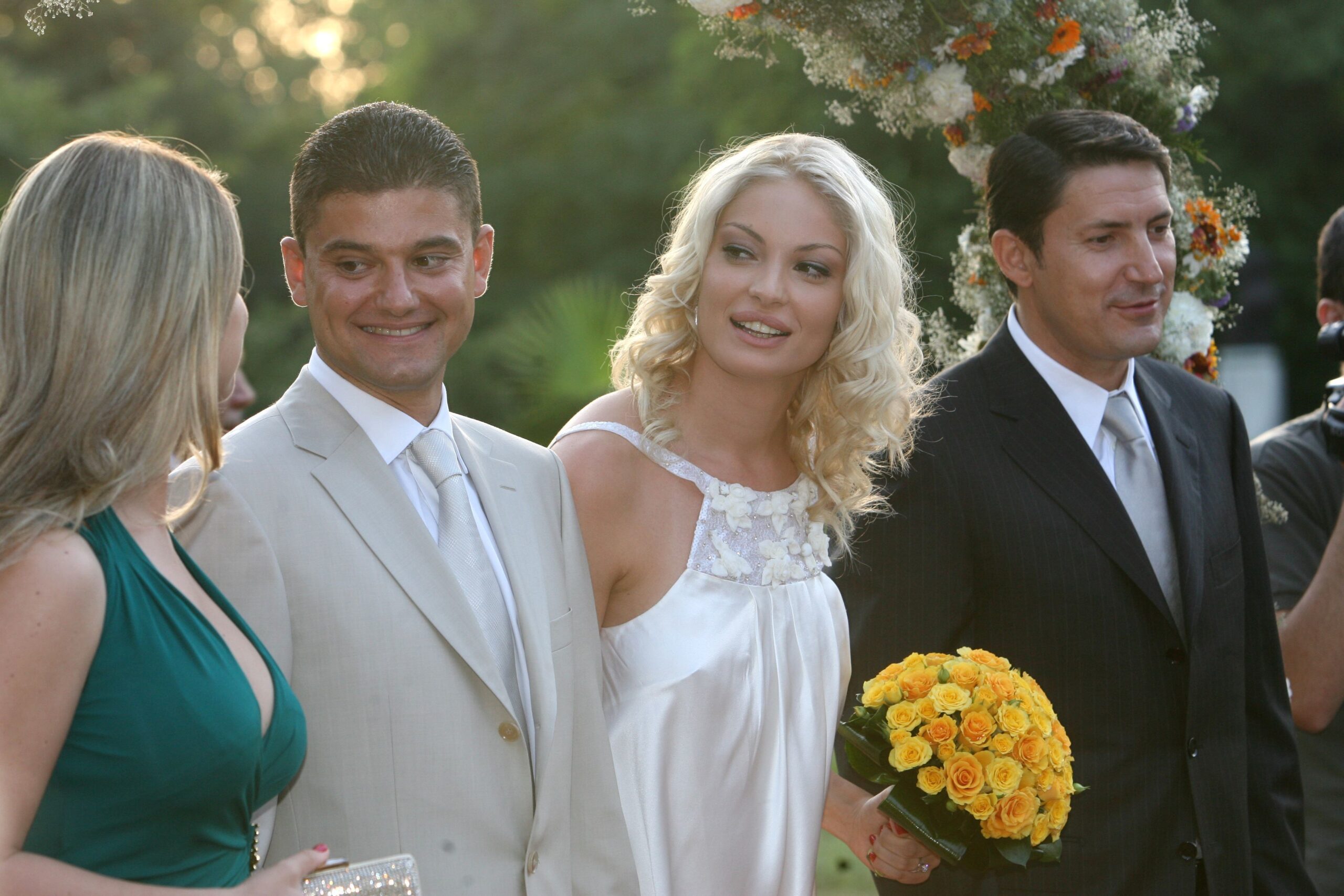 Valentina Pelinel, extrem de frumoasa si de sexy, a purtat o rochita scurta, alba, vaporoasa, la care a accesorizat un buchet de trandafiri galbeni.