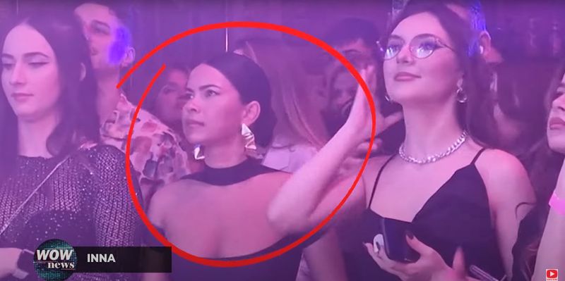 Cu așa o bluză decoltată, Inna nu a avut cum să se facă nevăzută. Artista a stat chiar în primul rând și a vrut să vadă prezentarea primului album al lui Minelli.