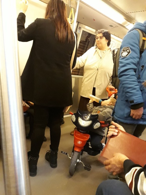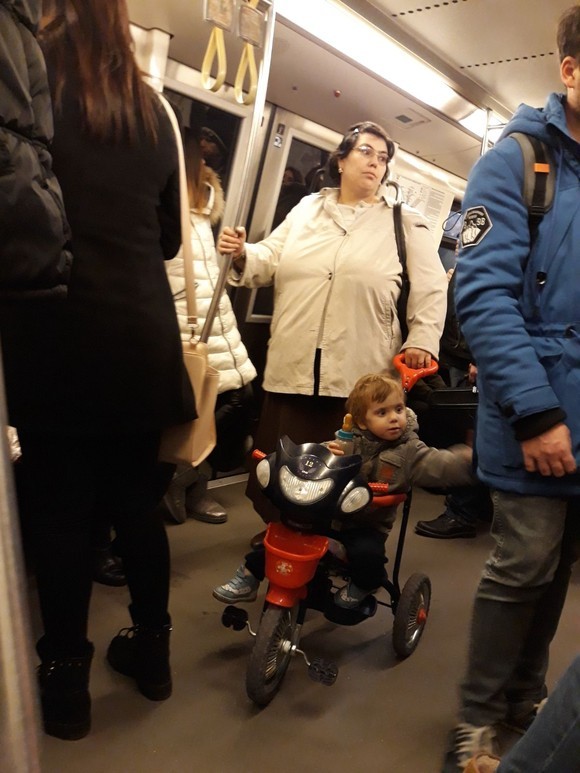Imbracat decent si cu haine curate, Ioana Tufaru a calatorit cu metroul insotita fiind de fiul ei. Micutul se afla intr-o bicicleta cum multi copii si-ar dori sa aiba, iar Ioana Tufaru il tinea aproape de ea, astfel incat sa nu ii deranjeze pe restul calatorilor.