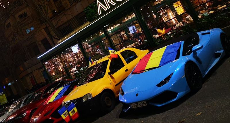 De 1 decembrie, patronii localului au avut ideea de a crea steagul țării cu ajutorul unor bolizi de lux cu prețuri năucitoare. Mai exact, ei au folosit un Lamborghini roșu, un Logan galben și un Lamborghini albastru ca să afișeze culorile tricolorului în fața restaurantului.