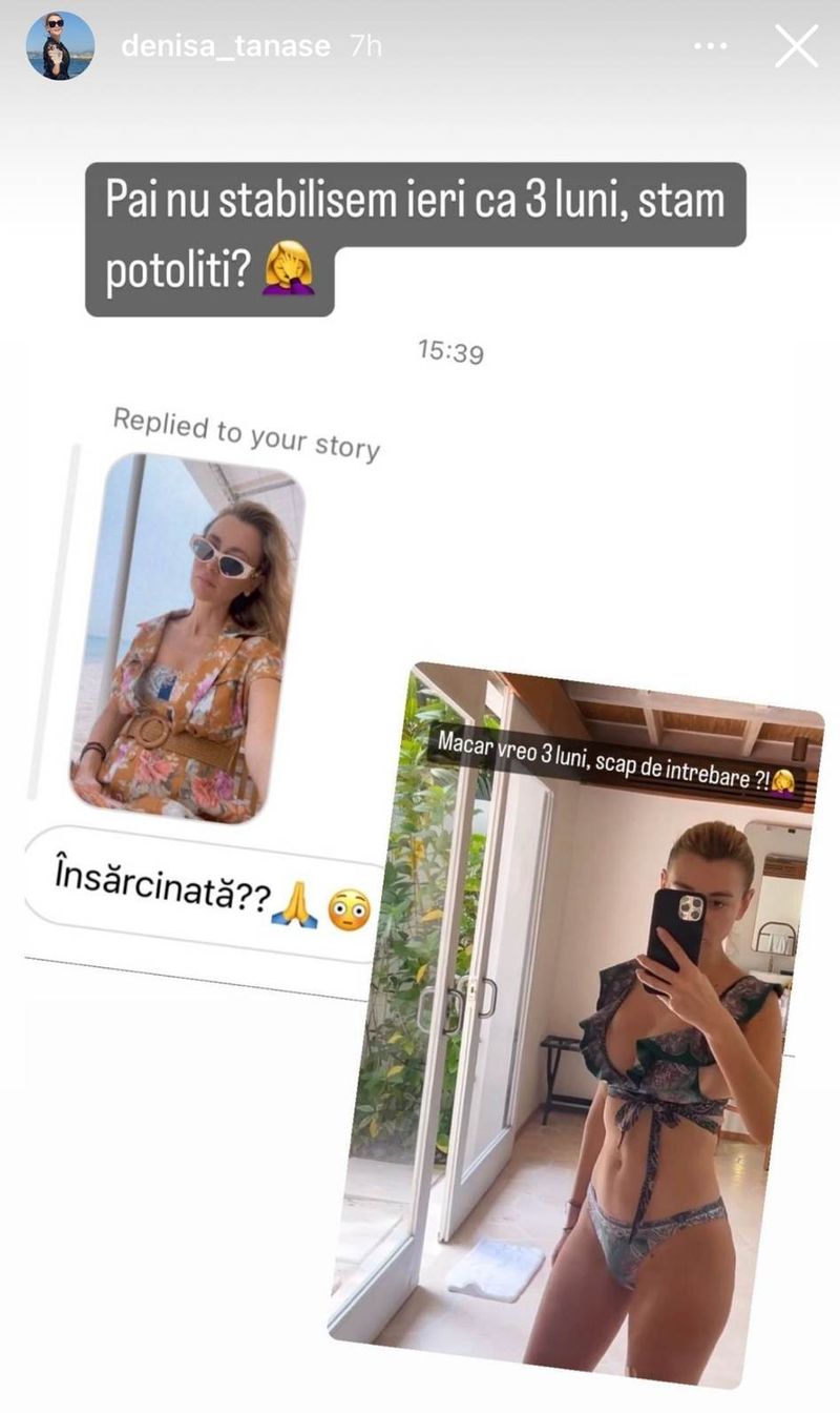 ”Măcar vreo trei luni scap de întrebare (nr. dacă este sau nu însărcinată)”, a scris Denisa Tănase, pe pagina sa de Instagram.