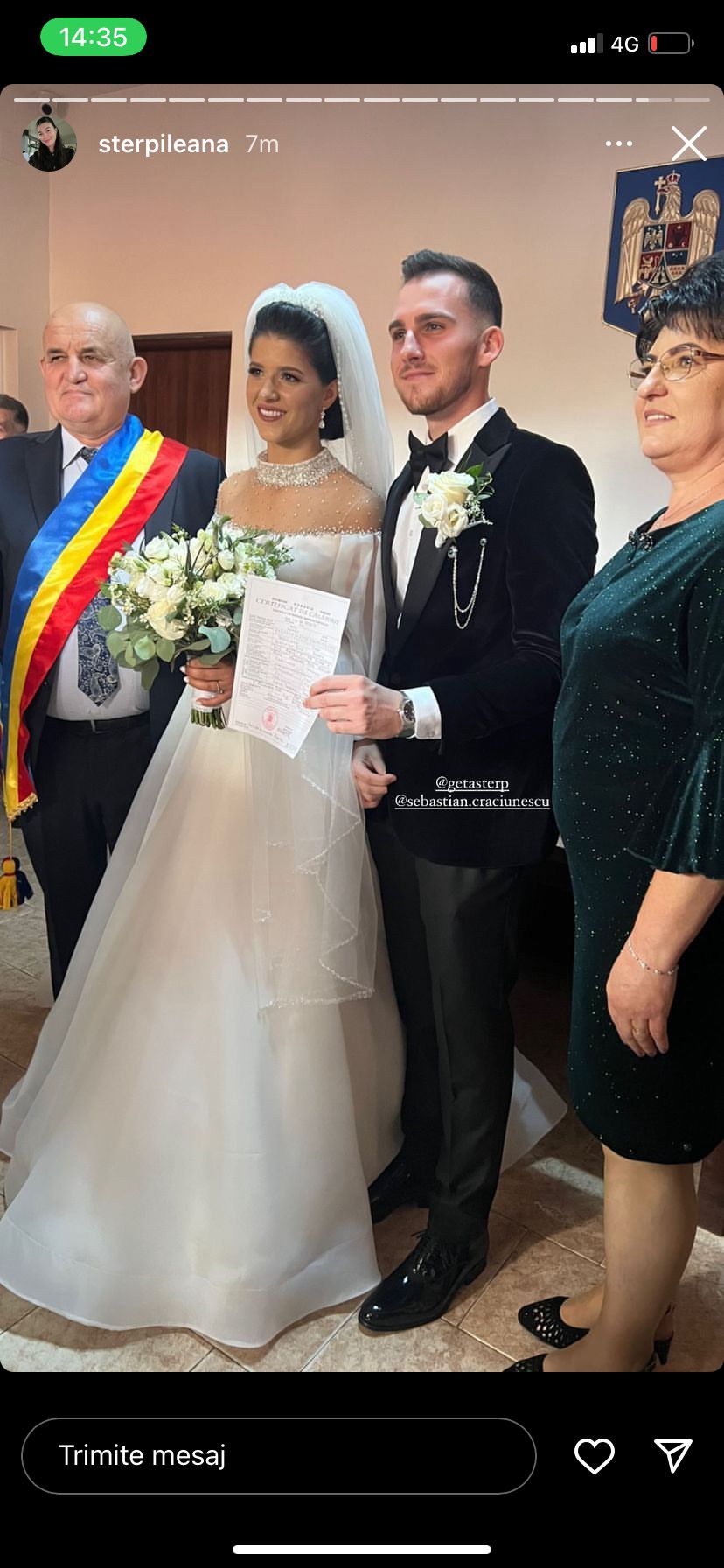Ileana Sterp a surprins inclusiv imagini de la cununia civilă, în momentul în care cei doi proaspăt căsătoriți au semnat actele în fața ofițerului de stare civilă. Mirele și mireasa s-au fotografiat ulterior cu actul de căsătorie în mână, mândri fiind că au devenit, după 4 ani plini de iubire, soț și soție.