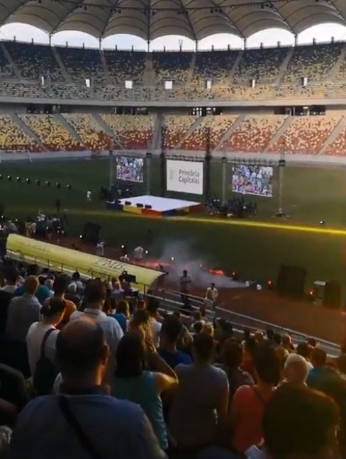 Cat timp Firea s-a aflat pe scena, toti romanii prezenti pe stadion au huiduit-o pana cand aceasta a parasit terenul.
