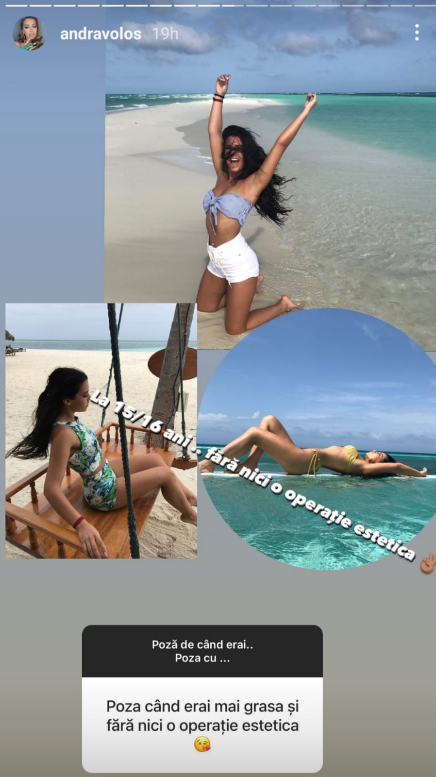 Andra Voloș le-a das peste nas celor care s-au îndoit de frumusețea ei de dinaintea operațiilor estetice. Șatena a publicat mai multe fotografii făcute în adolescență, pe când avea doar 16 ani, și i-a lăsat cu gura căscată pe cei de acasă, când au văzut cum arăta tânăra în urmă cu câțiva ani.