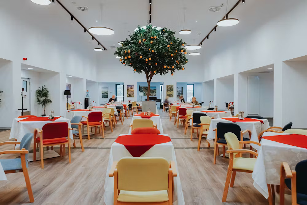 Locația este considerată un cămin de lux, unde vârstnicii pot desfășura diverse activități, ca plimbări, evenimente, kinetoterapie, tratamente etc.. Camerele sunt spațioase, au baie proprie, TV, șifonier, paturi ortopedice, acționate electric ideale pentru persoanele cu probleme locomotorii. Și peisajul este unul de vis, având o curte mare, perfectă pentru plimbări și recreeri în aer liber.