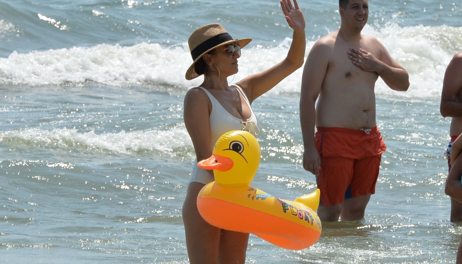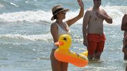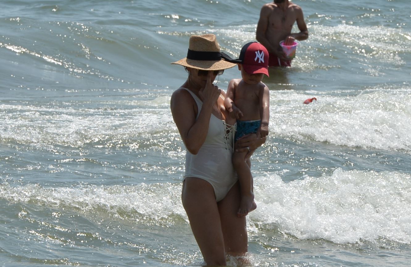 Si cu toate ca a venit la plaja insotita de bona filipineza, Claudia a preferat sa-si ia in brate fiul si sa-l bage in apa, semn ca exista o legatura puternica intre ea si copil.