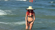 In prima zi pe malul marii, artista a ales un costum alb, intreg, iar dupa aceea a optat pentru unul in doua piese care-i scotea in evidenta formele de invidiat.