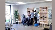 Direct din sala de kinetoterapie, în timp ce Mioara, ajutată de un specialist, își făcea programul de recuperare medicală, Oana Roman a imortalizat momentul.
