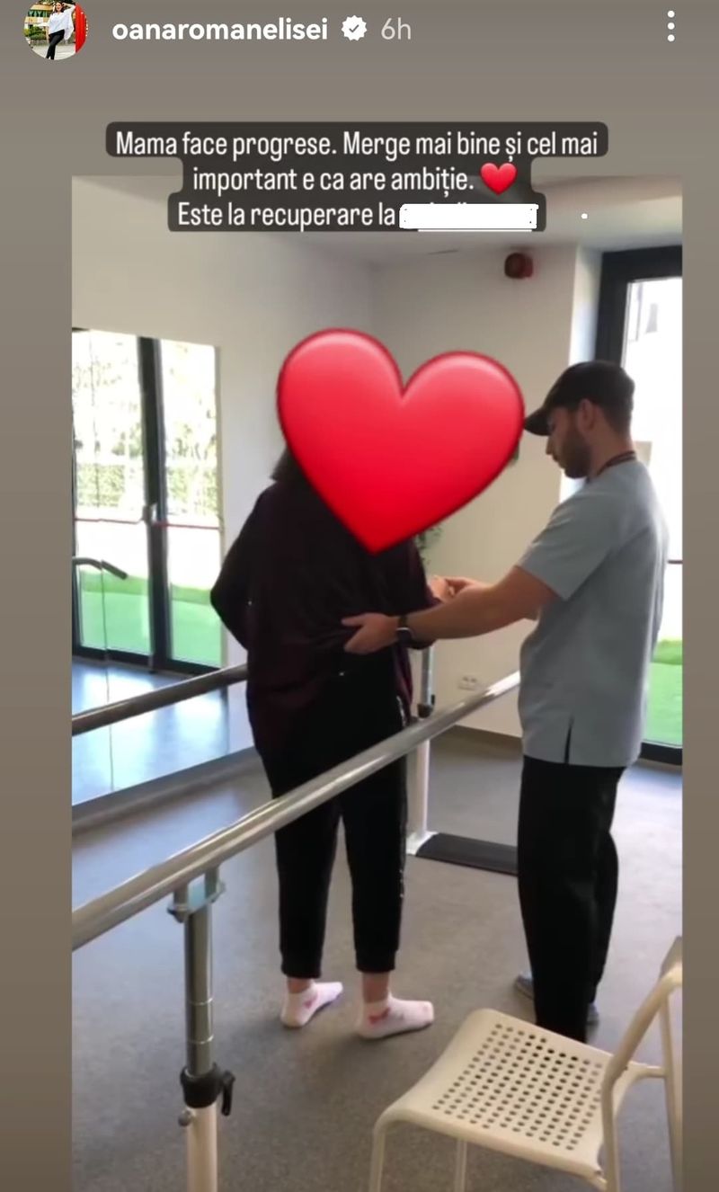 ”Mama face progrese. Merge mai bine și important e că are ambiție. Este la recuperare”, a scris Oana Roman, în dreptul imaginii cu mama sa.