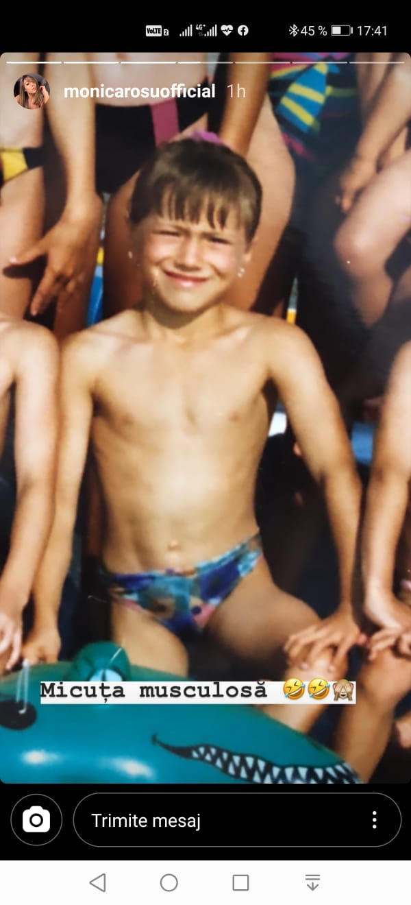 Cu toate acestea, de curând, sexy gimnasta Monica Roșu, care acum își răsfață fanii, nu puțini la număr, cu fotografii care îi pun în valoare frumusețea naturală, a descoperit și o poză de pe vremea în care făcea primii pași în gimnastică. Înconjurată de amici de-ai săi, Monica Roșu s-a pozat în costum de bai pe când avea doar câțiva anișori și a descris poza la modul del mai haios cu putință. ”Micuța musculoasă”, a scris Monica Roșu, postând și câteva emoticoane care descriu exact sentimentele pe care le are când se uita la fotografia cu pricina.