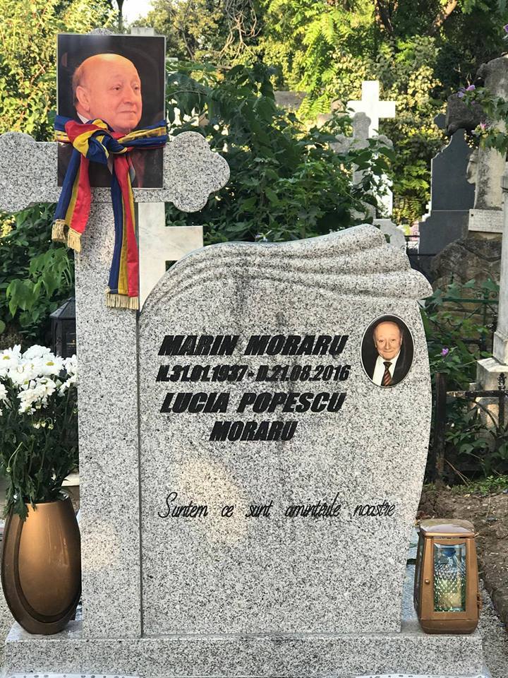 Inainte sa se implineasca un an de la moartea actorului, vaduva lui i-a facut deja un monument spectaculos, unde langa numele lui Marin Moraru este trecut si cel al femeii care i-a fost alaturi atatia ani. Lucia Moraru a scris si un mesaj pe cruce: “Suntem ce sunt amintirile noastre”.