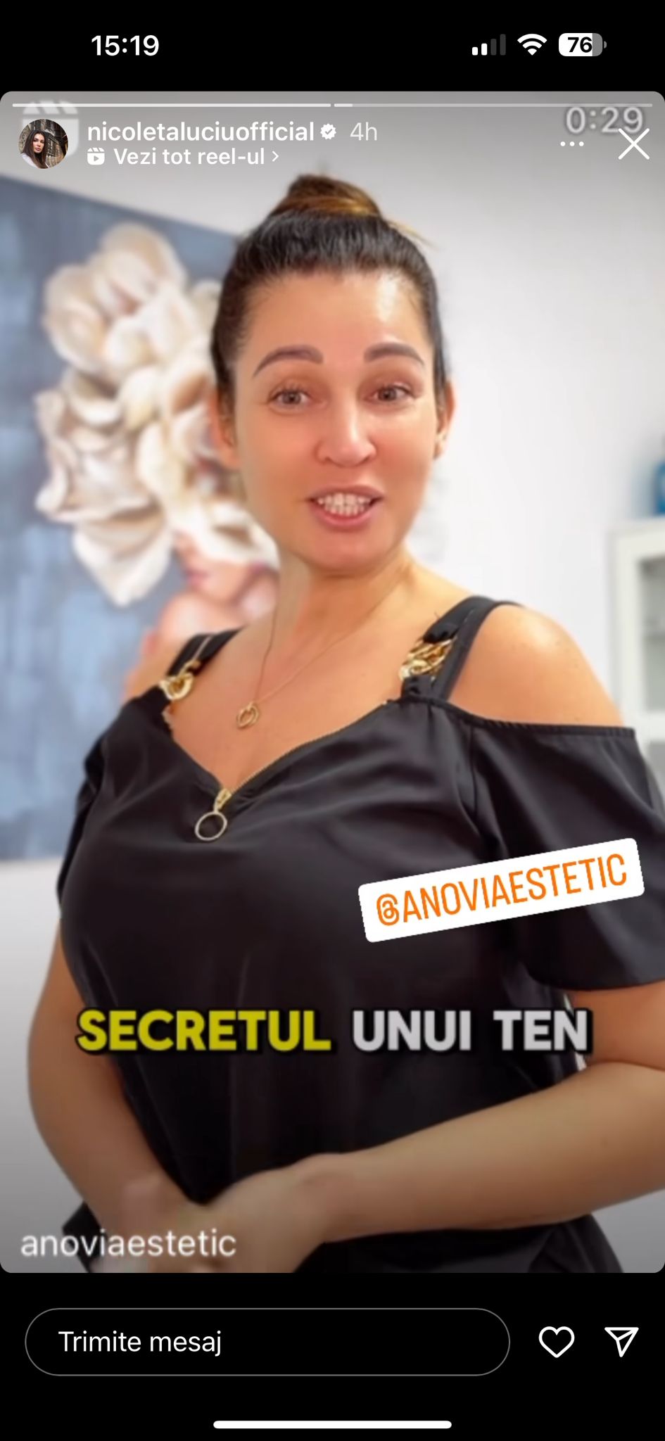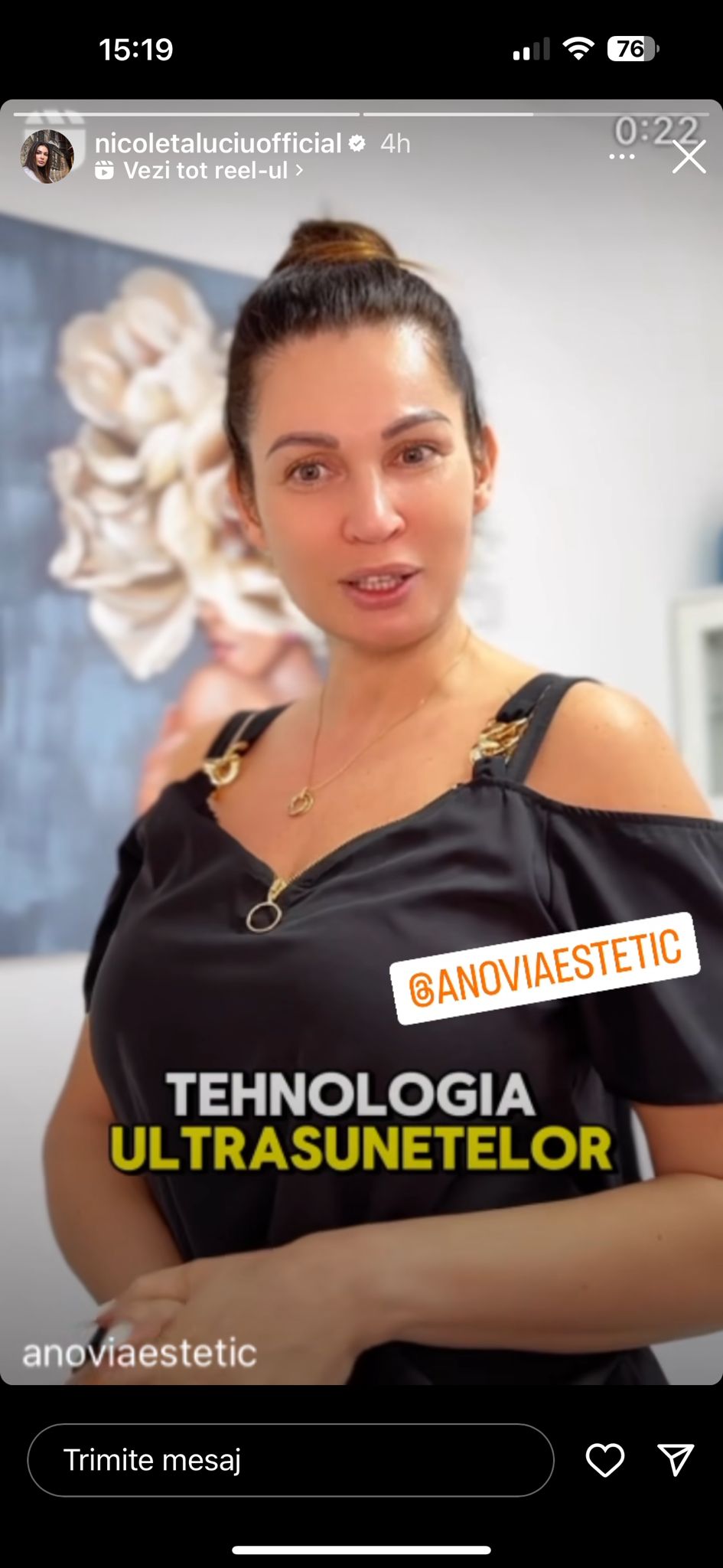 „Vrei să știi secretul unui ten mai tânăr și mai ferm? Ați auzit de hifu? Acest tratament folosește tehnologia ultrasunetelor, pentru a vă oferi o piele impecabilă, fără intervenție chirurgicală sau timp de recuperare”, le-a spus Nicoleta Luciu, într-un filmuleț postat pe contul său de socializare.