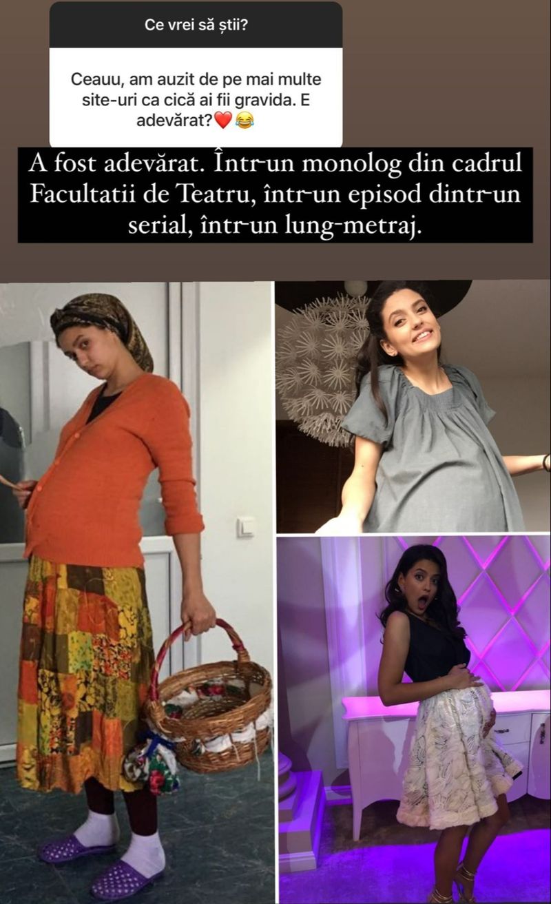 Vedeta a explicat că nu este adevărat, însă poate spune că a jucat de mai multe ori rolul unei femei gravide, prin prisma meseriei, însă niciodată în viața reală. Pe această cale, Oana Moșneagu chiar le-a făcut o bucurie fanilor, postând o serie de imagini cu ”burtica la vedere” din perioada când a avut de joc un astfel de rol.