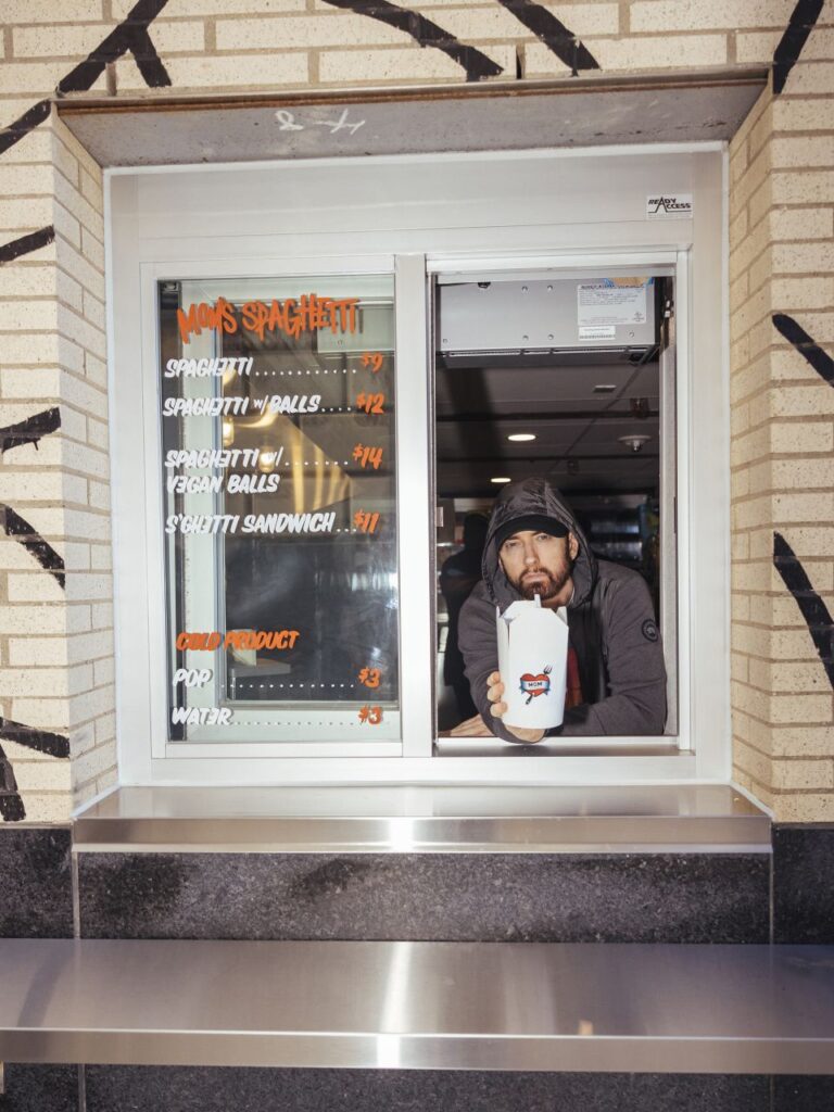 Punctul de plecare al restaurantului din Detroit, „Mom’s Spaghetti” a fost inițial în anul 2017, când Eminem și echipa sa au testat ideea localului în timpul câtorva spectacole susținute de rapper. Surpriza cea mai mare a fost faptul că inspirația numelui restaurantului provine din melodia artistului „Lose Yourself”, lansată în anul 2002: „His palms are sweaty, knees weak, arms are heavy/There’s vomit on his sweater already, mom’s spaghetti.”. De asemenea, o altă surpriză fabuloasă pentru fani a fost și faptul că la deschiderea localului, primii zece clienți au avut onoarea de a fi serviți chiar de Eminem și au plecat de acolo și cu câteva selfie-uri cu actorul american.