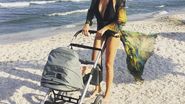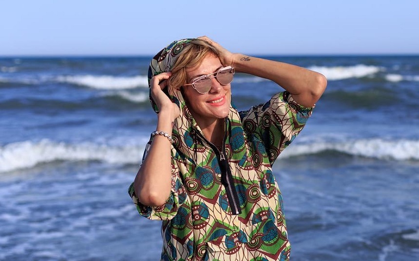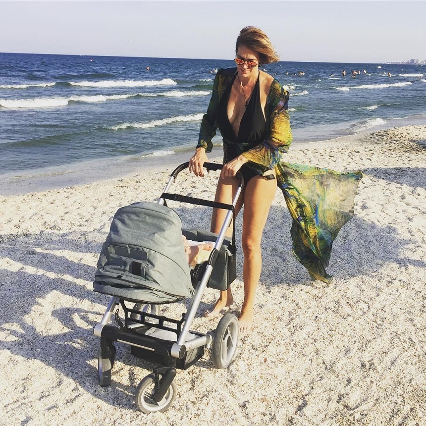 Imbracata intr-un costum de baie tip body, vedeta s-a bucurat de ultimele raze de soare ale acestei veri si s-a plimbat alaturi de baietelul ei nou nascut pe plaja.