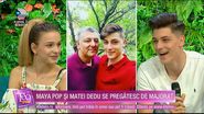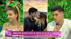 Matei și Maya au povestit cum s-au cunoscut și ce planuri au pentru viitor. Matei a practicat fotbalul și are de gând să își reia activitatea în iarbă, dar abia după ce va trece de marele hop din vara aceasta: bacalaureatul.