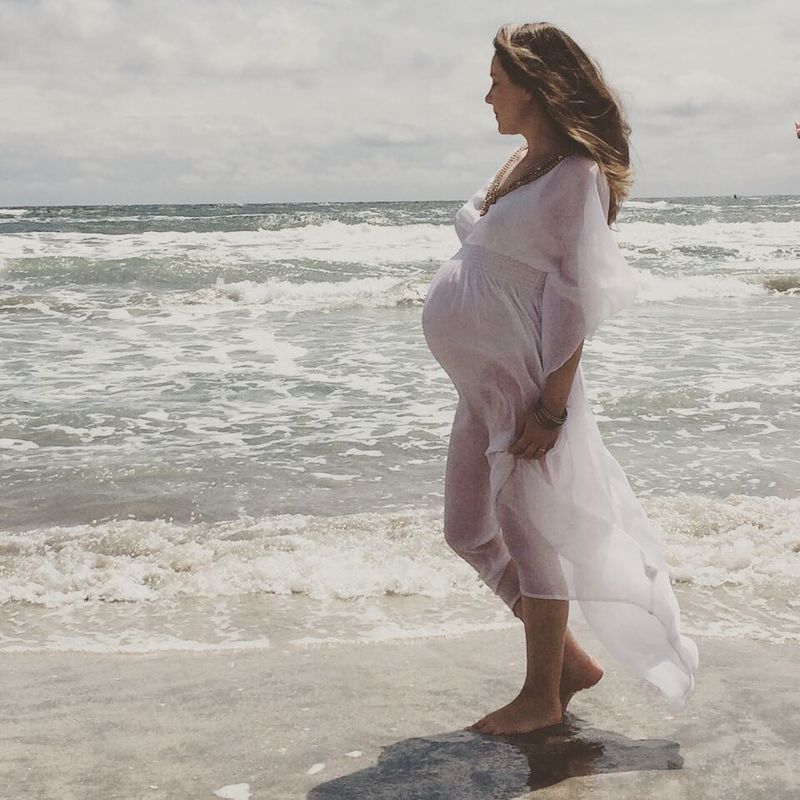 Oana Turcescu a vrut sa-si ascunda sarcina o buna bucata de vreme purtand haine largi, vaporoase. Recent, insa, creatoarea de moda si-a postat pe Instagram o fotografie in care lasa sa i se vada perfect burtica de gravida. Imbracata intr-o rochie alba, pe malul marii, Oana e cu siguranta pregatita pentru intalnirea cu bebelusul.