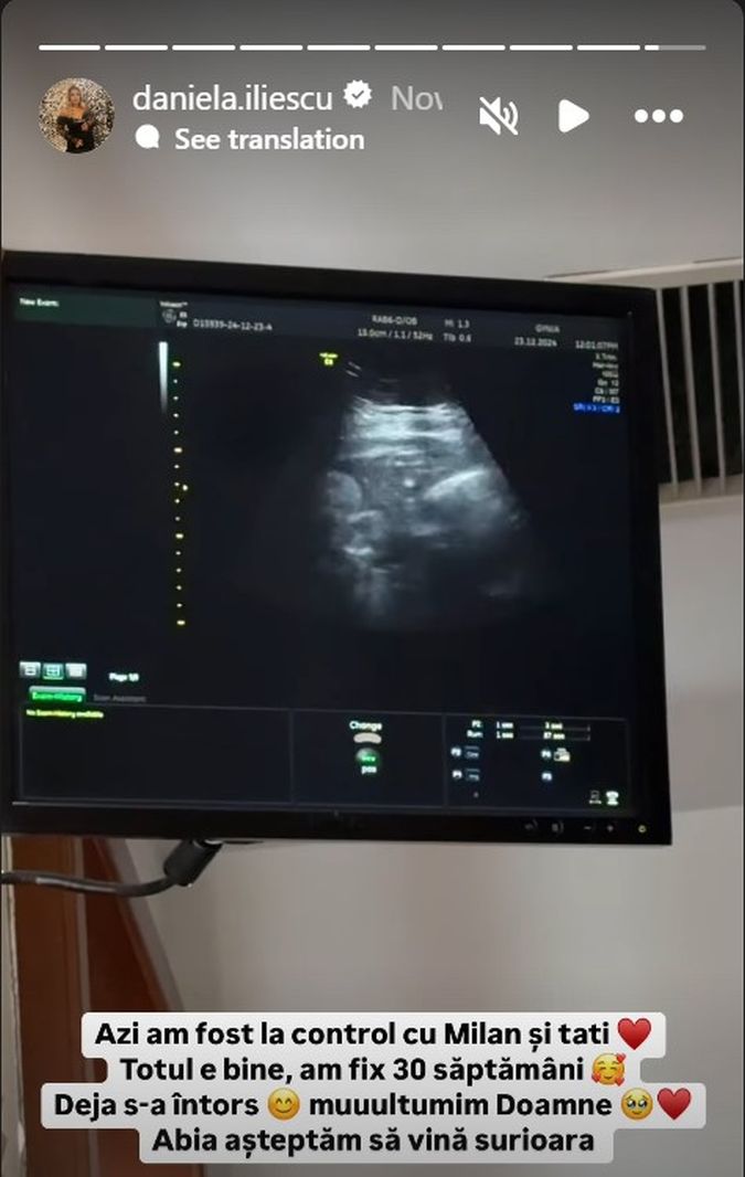 „Azi am fost la control cu Milan și tati. Totul e bine, am fix 30 de săptămâni. Deja s-a întors. muuultumim Doamne. Abia așteptăm să vină surioara”, a scris Daniela Iliescu, pe Instagram.