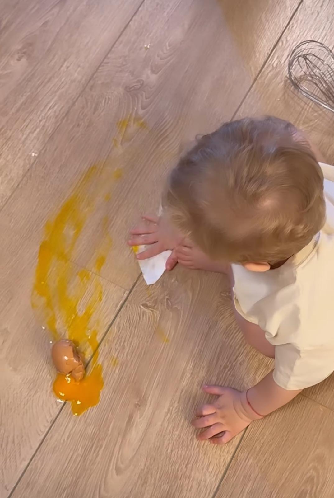 Și asta pentru că, dorind să-l țină, probabil, ocupat în timp ce ea își făcea treburile, Tiago a intrat în bucătărie și a arătat ce poate.
