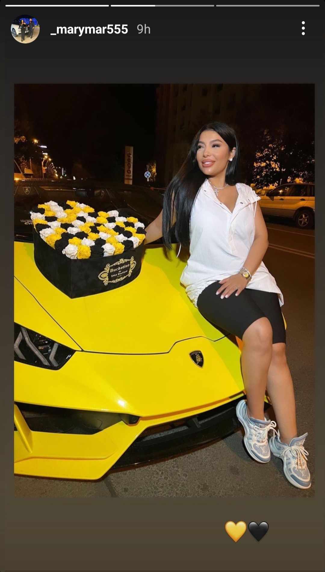 Pe chipul lui Marymar se poate citi fericirea din prima. Este o femeie iubită și o mamă împlinită, iar acest lucru este demonstrt în urma aparițiilor ei. În fotografia postată de brunetă se află o cutie imensă plină cu trandafiri colorați în nuanțe de galben, negru și alb. Cadoul nu putea fi oferit oricum și pe capota mașinii de lux, pe care cântărețul o deține. Astfel că florile superbe s-au asortat perfect cu bolidul de lux.