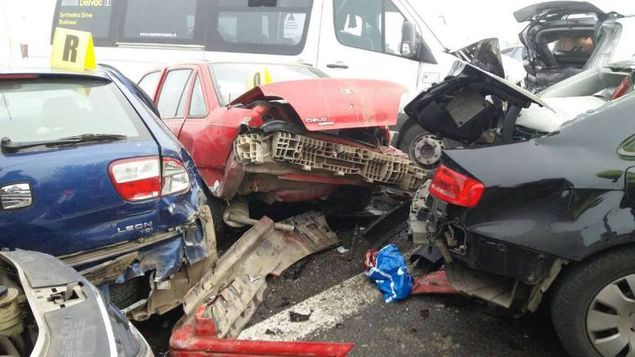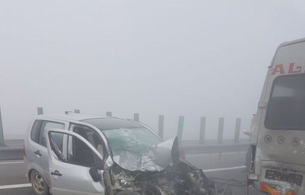 ACCIDENT PE A2: Soferul unei Dacii Logan care venea dinspre Bucuresti a fost lovit din spate dupa ce ar fi incetinit, pe motiv ca nu mai vedea nimic din cauza cetei. Dupa ce a tras pe dreapta, o serie de bubuituri au inceput sa se auda timp de un minut, de la late 29 de masini care intrau una in alta, din cuaza ca soferii nu au apucat sa franeze la timp.