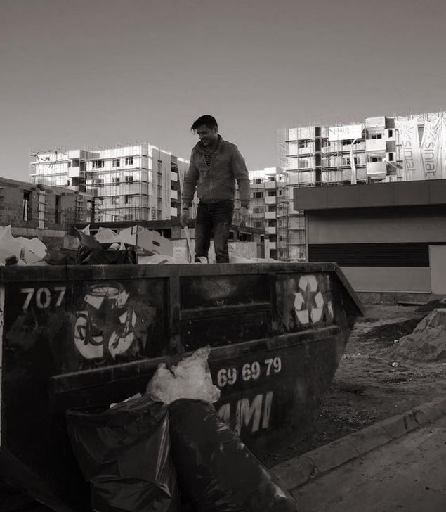 Vedeta a fost surprinsa in timp ce statea cocotata pe un maldar de gunoaie, intr-un tomberon, asa cum nu a mai fost vazuta pana acum.