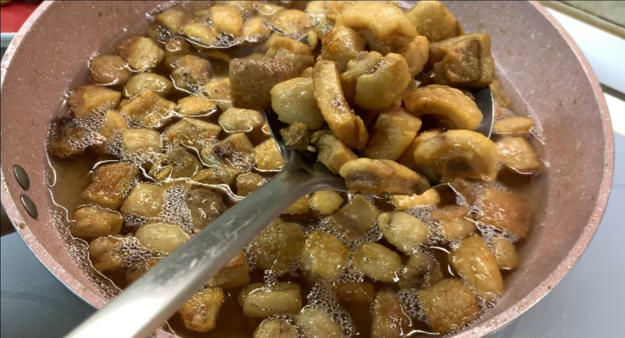 Bucățile de slănină vor fi lăsate pe foc timp de o oră, cel mult o oră și jumătate, timp în care trebuie să amestecați din cât în când, pentru a vă asigura că jumările nu se vor prinde de oală.