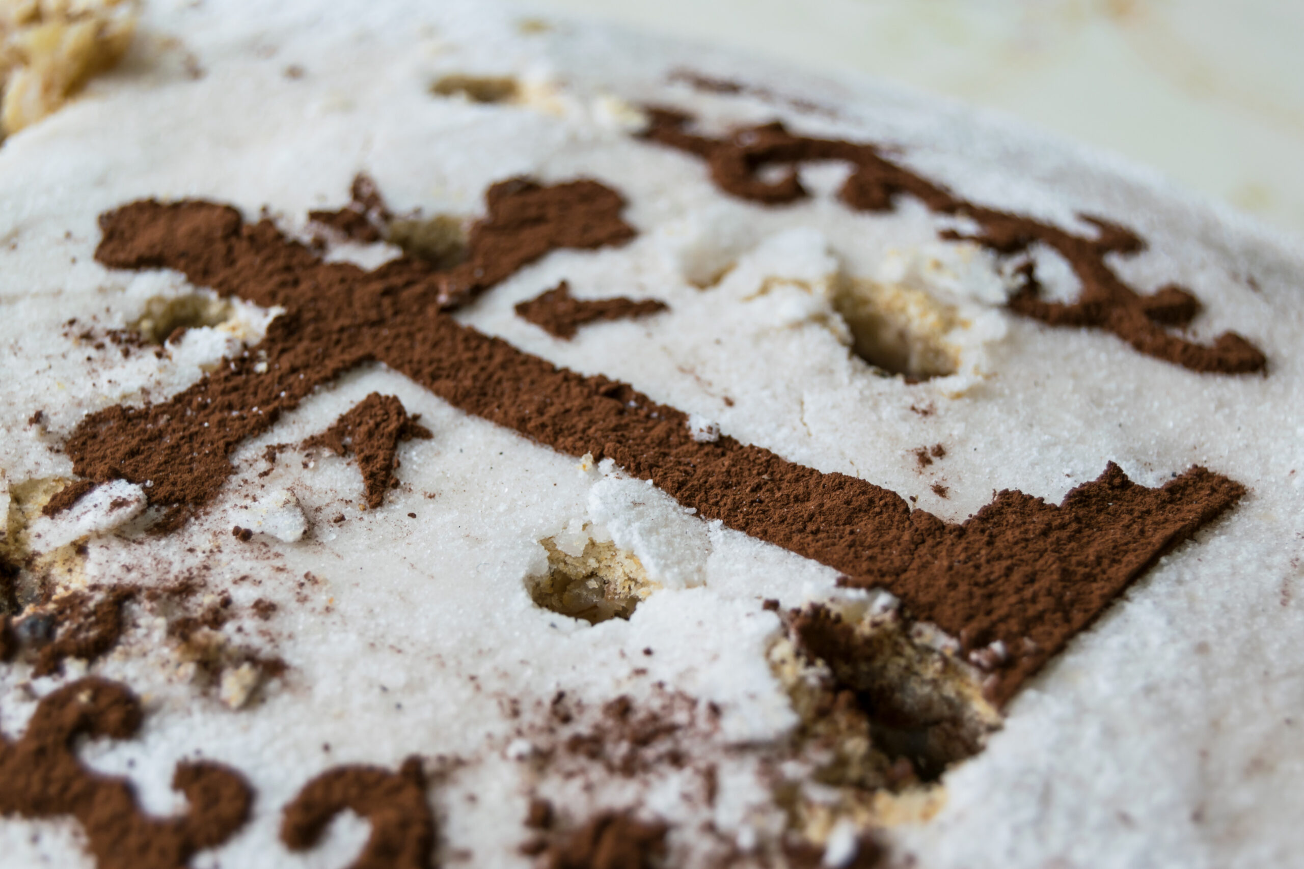 - Se presară biscuiți măcinați sau fulgi de cocos deasupra, cât se poate de uniform. Dacă doriți să obțineți o cruce, se poate folosi o formă din lemn sau din plastic, pe care o găsim în comerț.
